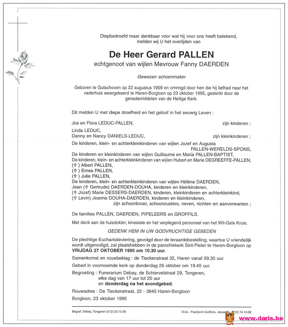 Pallen, Gerard, geboren op 22-08-1909 te Gutschoven, overleden op 23-10-1995 te Haren op 86-jarige leeftijd.