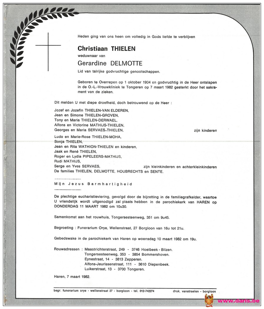 Thielen, Christiaen, geboren op 07-03-1982 te Overrepen, overleden op 07-03-1982 te Tongeren.