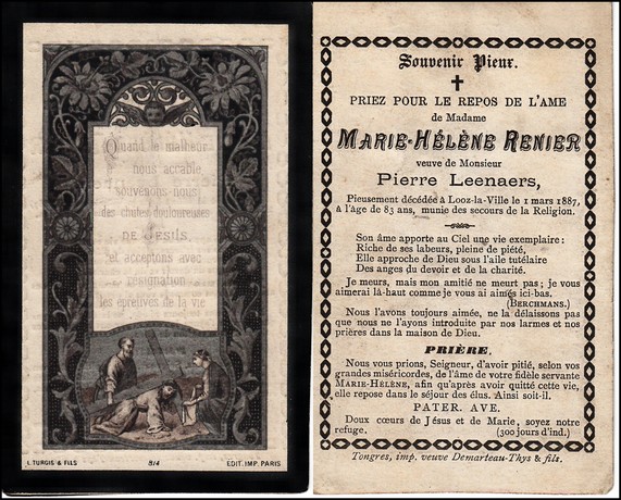 Verworst, Maria Henriette, geboren op 06-05-1871 te Mechelen, overleden op 14-01-1960 te Borgloon op 88-jarige leeftijd, gehuwd met Dewaersegger Eugene.