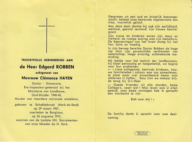 Vanormelingen, Frans Jozef Ernest, geboren op 10-09-1894 te Borgloon, overleden op 05-10-1975 te Tongeren op 81-jarige leeftijd, gehuwd met Haling Maria.